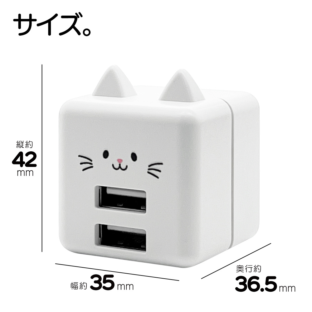 | 商品名 | モバにゃー AC充電器 USB A×2ポート 2.4A カシラ RAC2A2A02KSR |