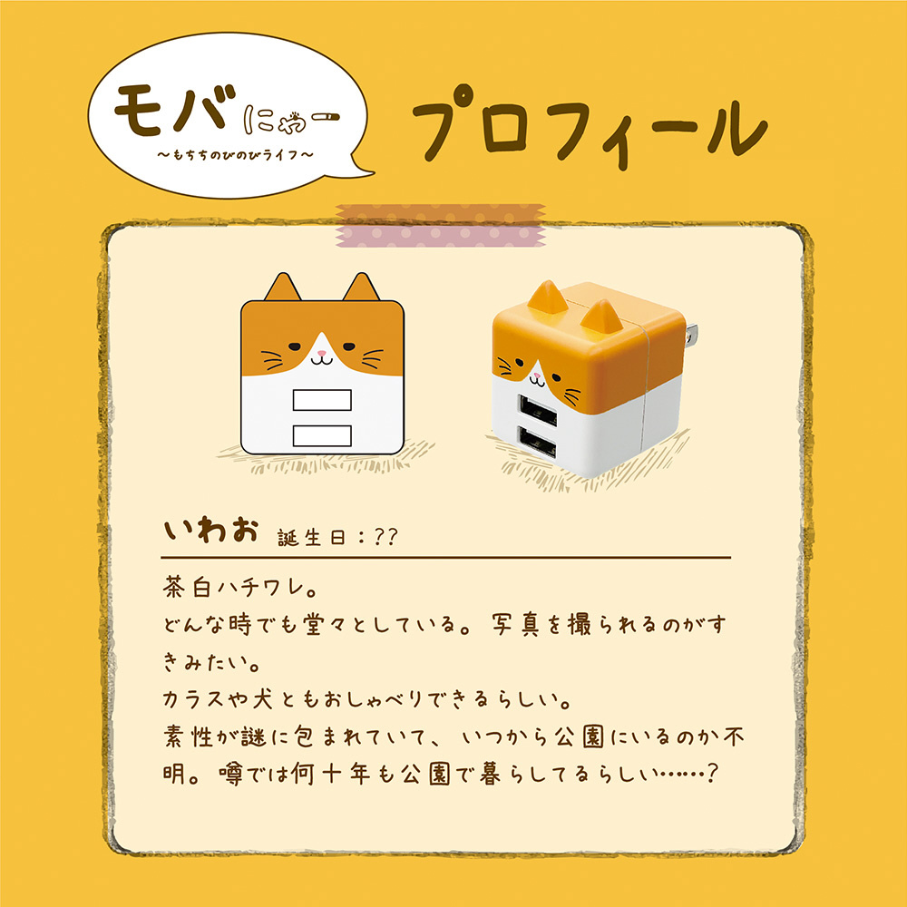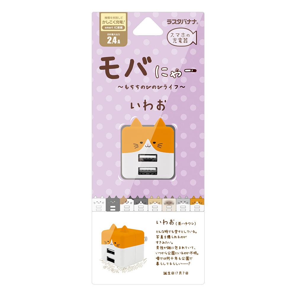 | 商品名 | モバにゃー AC充電器 USB A×2ポート 2.4A いわお RAC2A2A02IWO |