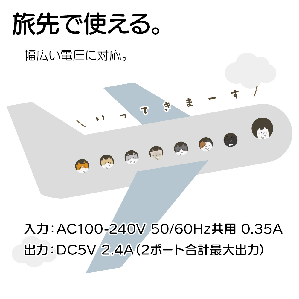 モバにゃー AC充電器 USB A×2ポート 2.4A いわお RAC2A2A02IWO
