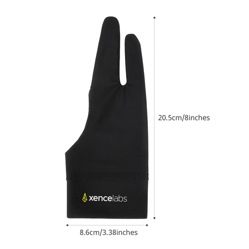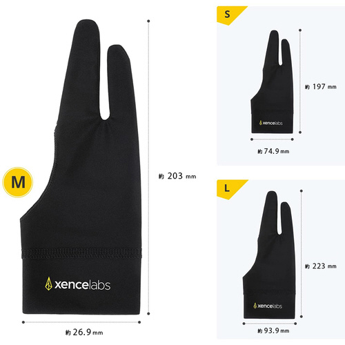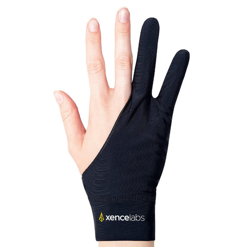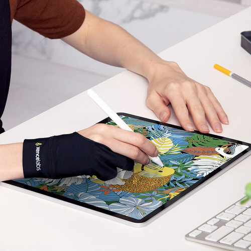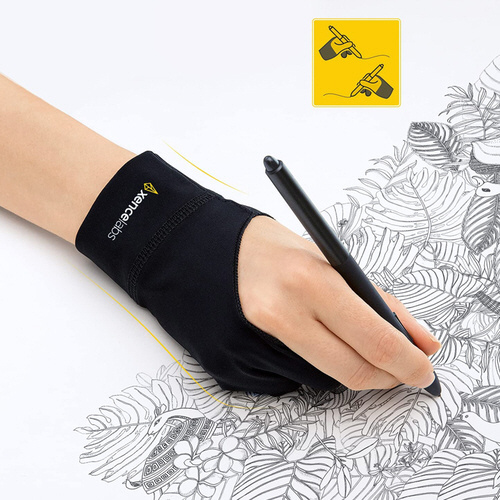 手とタブレット表面の間で起こる摩擦を軽減することで、ドロー体験を向上させます。グローブをはめることで、使っていない指や手のひらの脂肪分や水分の描画面への付着を防ぎ、描画に使用する指はグローブから出ているため、快適にペンを握ることができます。