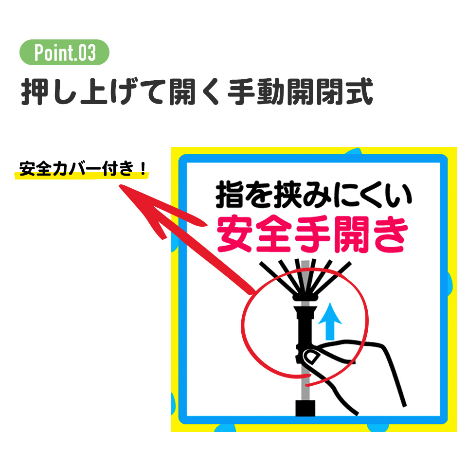 開閉部は指を挟みにくい安全カバー付きで安心!