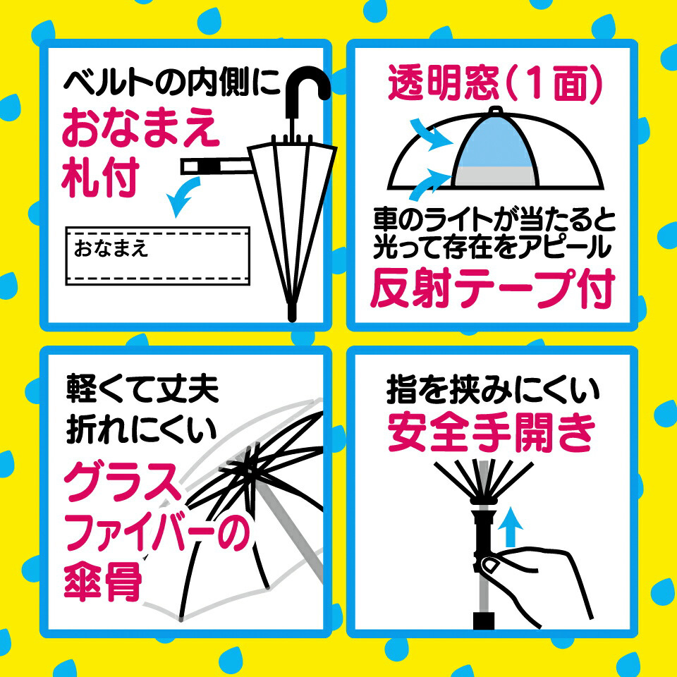 | 素材 | 傘生地の組成:ポリエステル100% 透明部分:ポリエチレン 骨:グラスファイバー |