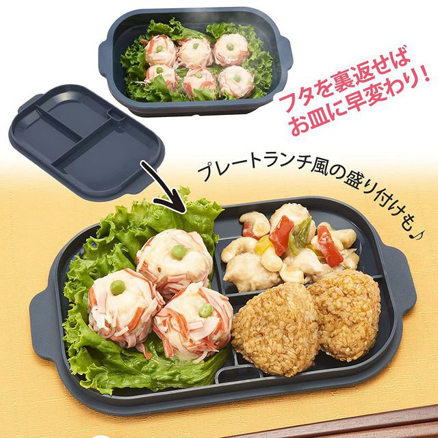 蓋を裏返せば3か所の仕切りがあり、お皿替わりにも使えます。