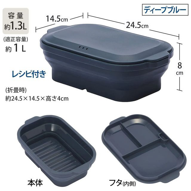 | 商品名 | toneフタがお皿になる シリコンスチーマー 角型 ディープブルー |