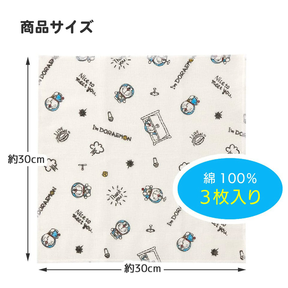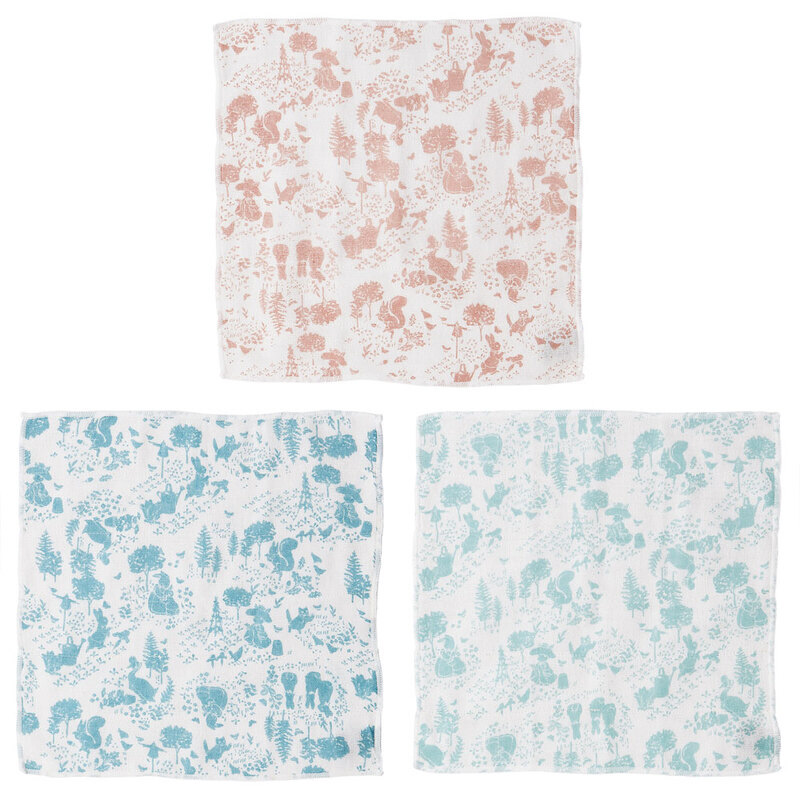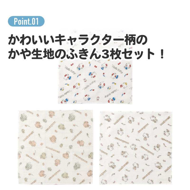 かわいいキャラクター柄のかや生地のふきん3枚セット。