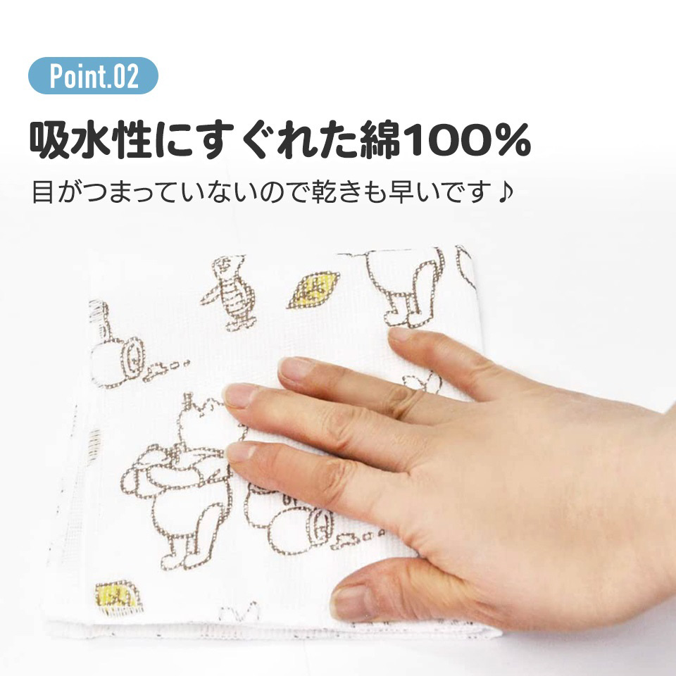 吸水性にすぐれた綿100%。