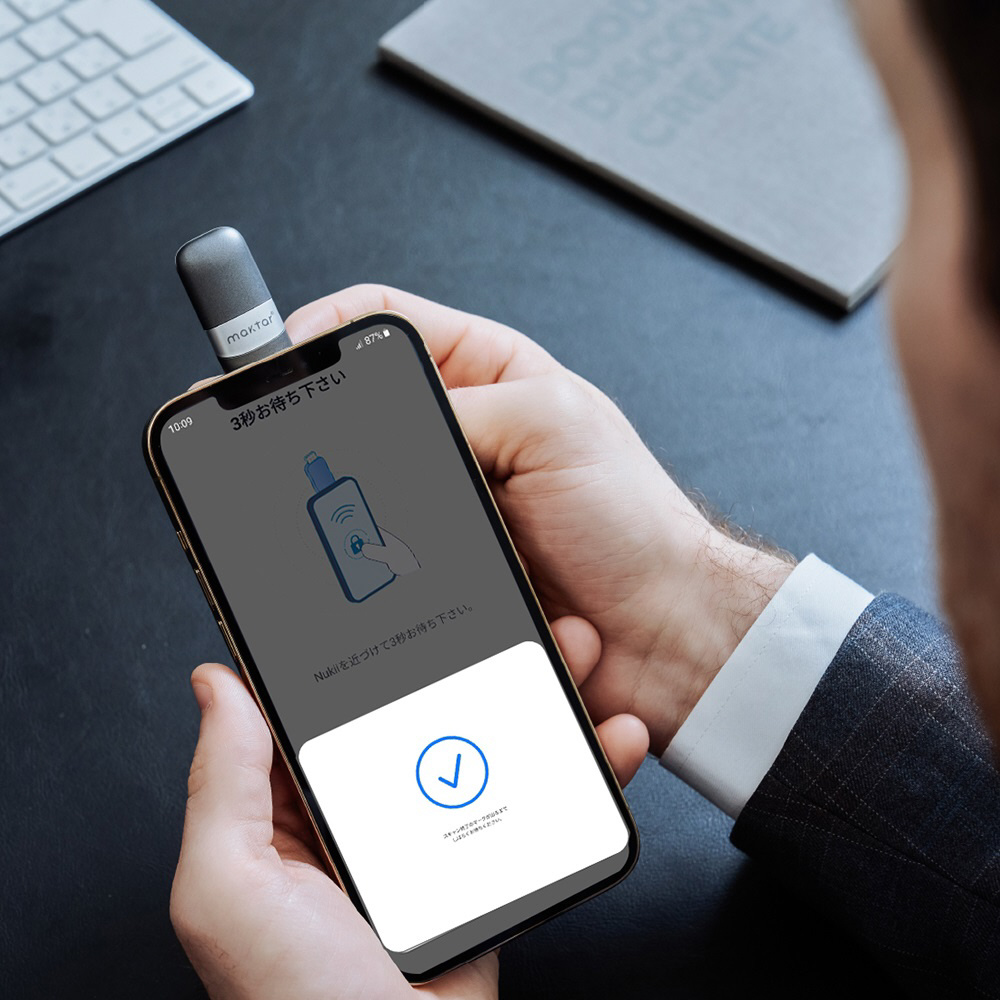 Nukii (ニューキー)はオートロック機能を搭載するUSBメモリです。ロック解除にはスマートフォンのNFCを使用します。