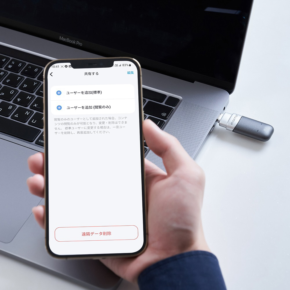 専用のスマートフォンアプリでユーザーや使用状況を管理、新規アカウントや共有ユーザーの登録、読取専用モードの設定などが可能です。