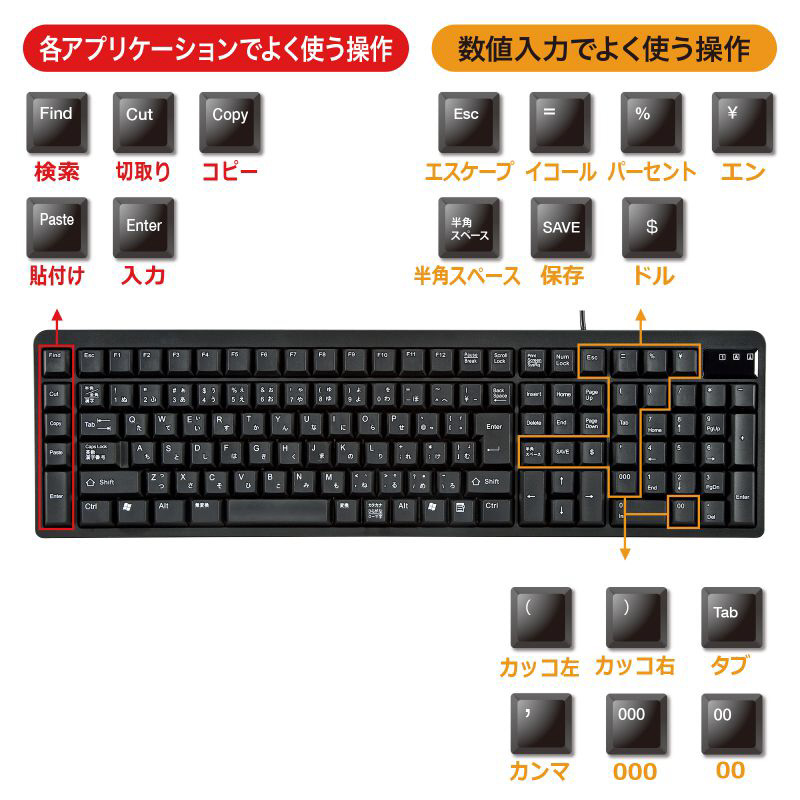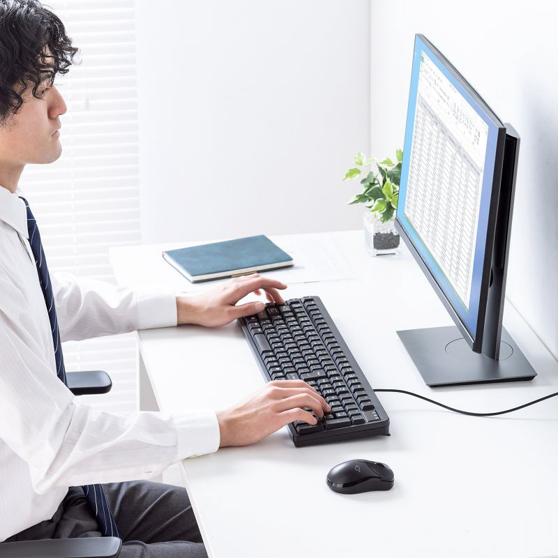 エクセル使用時に便利なショートカット機能や数字入力でよく使う記号キーを一発で入力でき、作業効率が大幅アップし時短につながるキーボード。