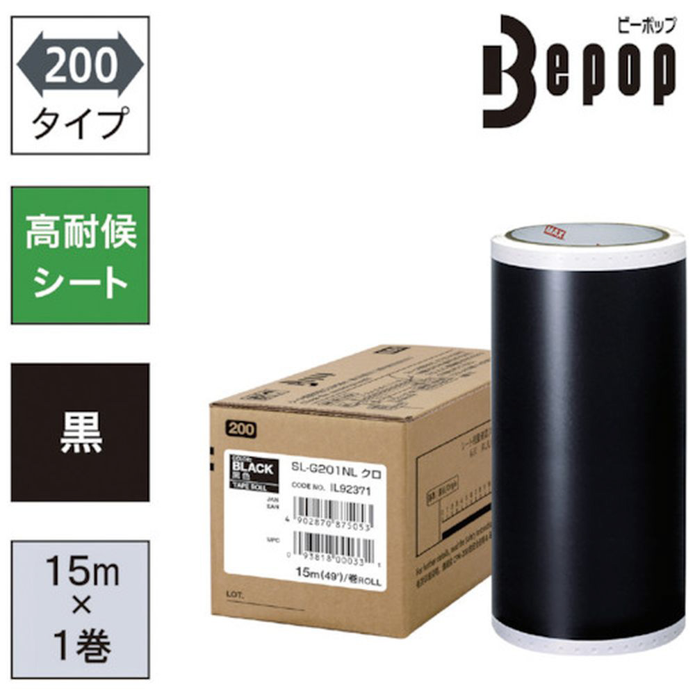MAX ビーポップ 高耐候シート 200mm幅シート SL−G201NL 黒 (15m×1巻入) SLG201NL