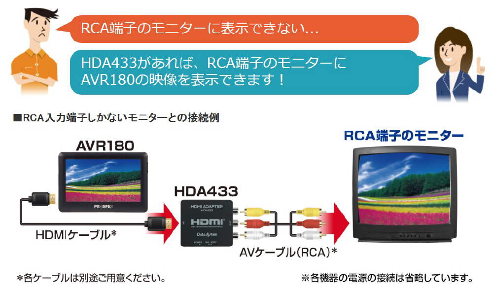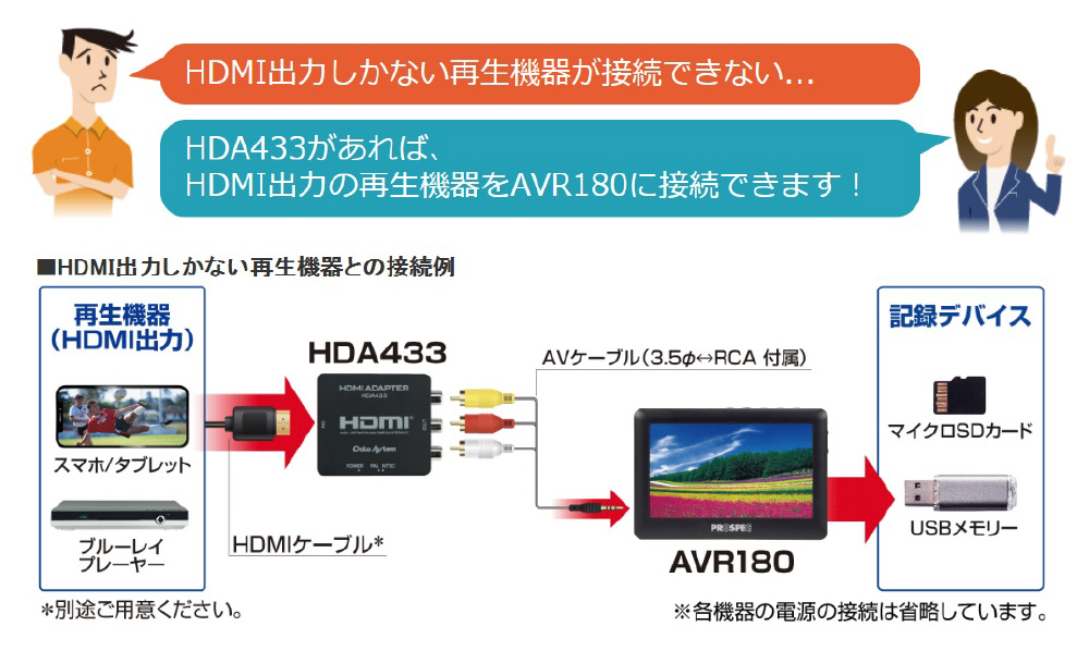 AVR180HはアナログビデオレコーダーAVR180とHDMI変換アダプターHDA433をセットにしたお得なパッケージ。