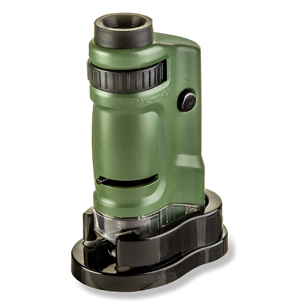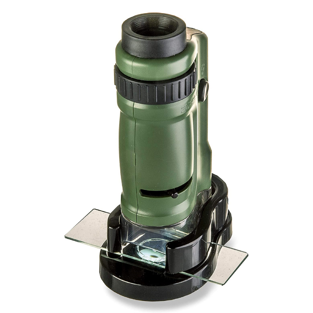 全米で大人気!手軽に持ち運べる!お子様の知的好奇心を育むマイクロ顕微鏡。倍率20-40xのポケット顕微鏡。LEDライトで鮮明な視野。そして最大40倍までのズームで目に見えないディテールが見える。拡大したいものに直接乗せるか、付属のスライドとステージを使用して視察できます。