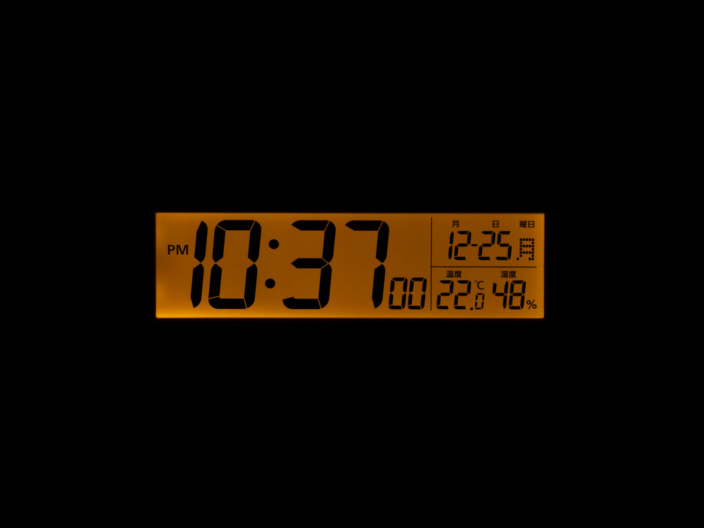 暗所自動点灯ライト機能付のデジタル電波目覚まし時計です。安定感のある横長の形状でお部屋に合わせやすいカラーです。