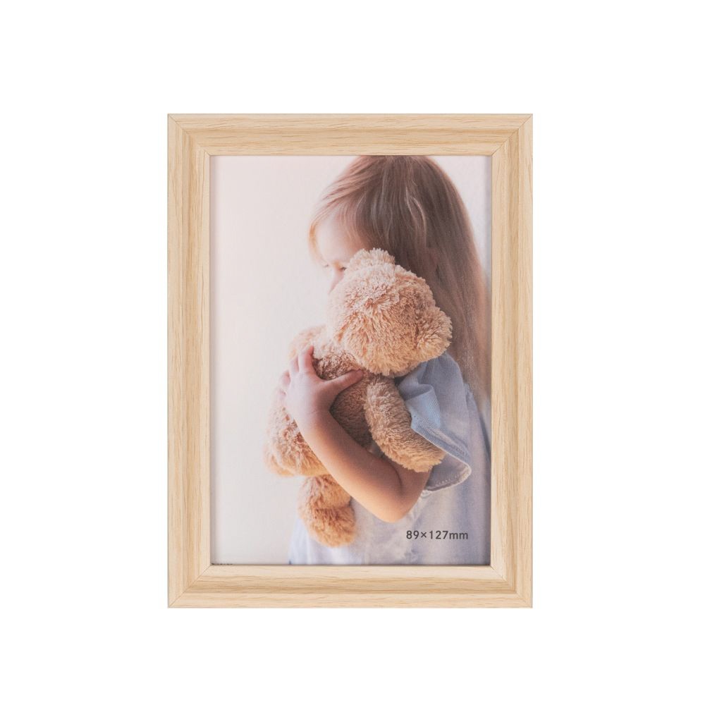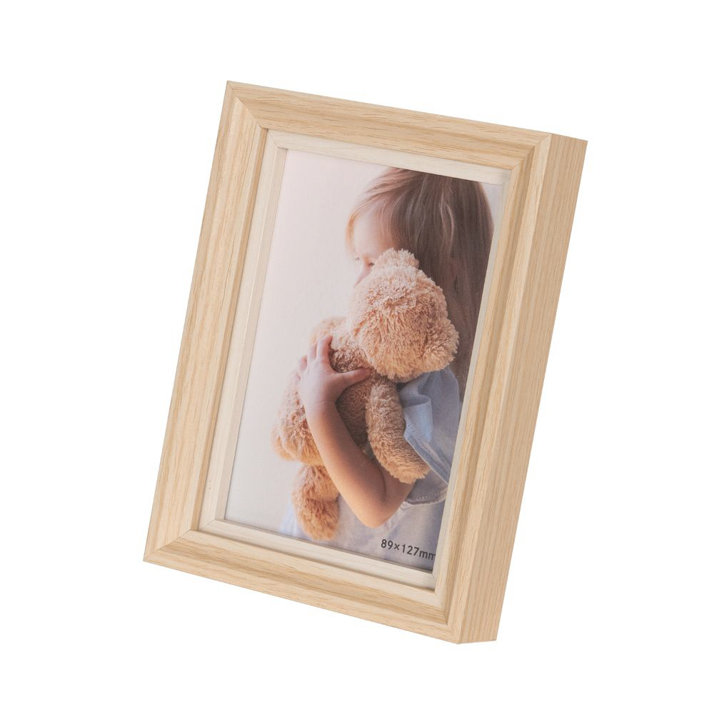 インナーカラーとナチュラルな木目調のツートンカラーがかわいいフォトフレーム 。ガラスと写真の間が空いているため、ガラスに写真が貼りつきません。また、インナーフレームは取り外し可能 です。