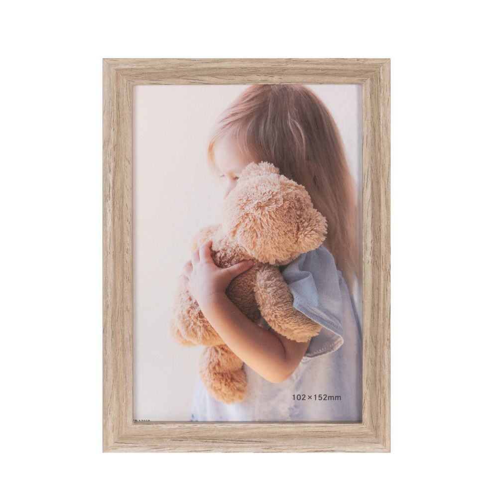 インナーカラーとナチュラルな木目調のツートンカラーがかわいいフォトフレーム 。ガラスと写真の間が空いているため、ガラスに写真が貼りつきません。また、インナーフレームは取り外し可能です。