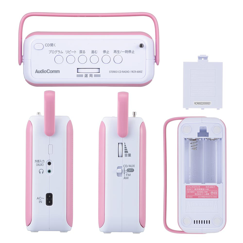 AM/FMステレオCDラジオ AudioComm ピンク RCR-600Z-P [ワイドFM対応]