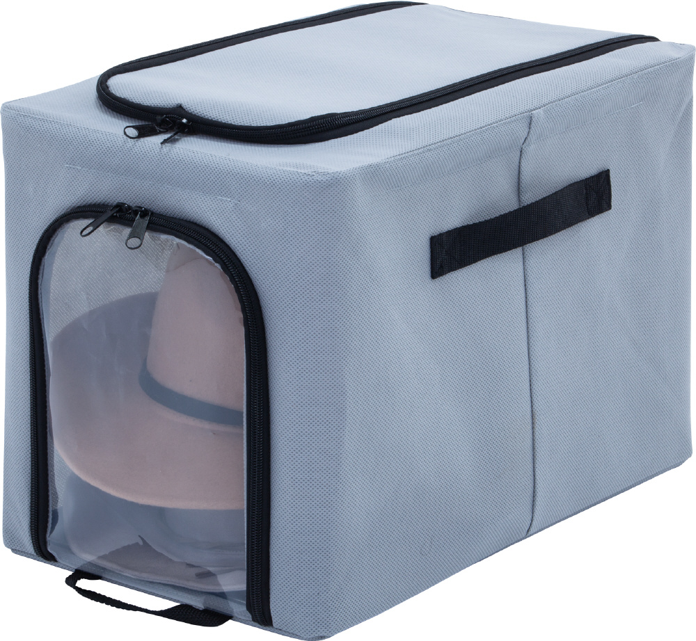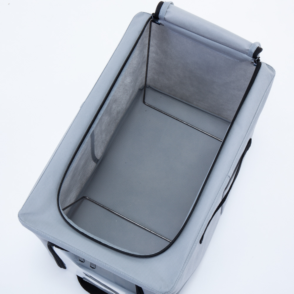 【商品仕様】:サイズ/約幅25×奥行40×高さ28cm、カラー/グレー、材質/ポリプロピレン・鉄・ポリエチレン、耐荷重/約6kg(天井部の負荷に対して・持ち手は除く)