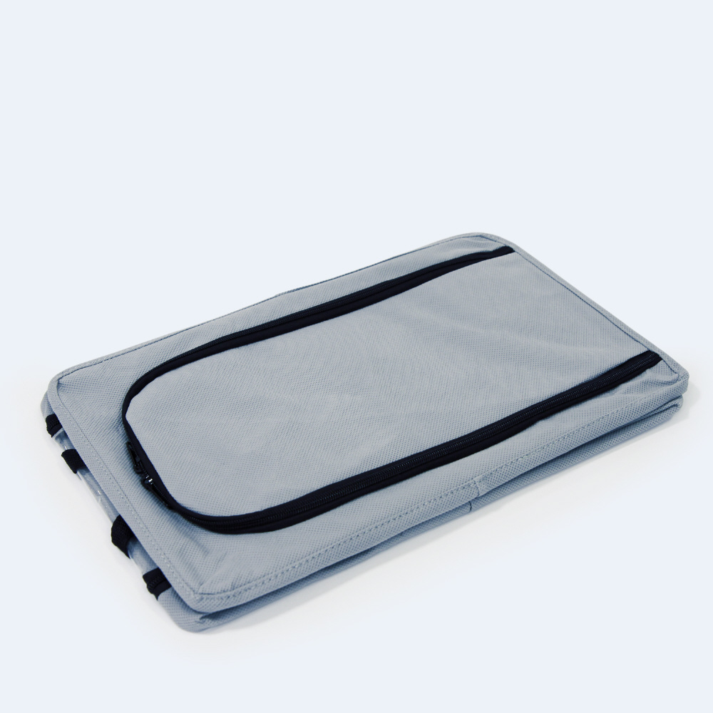 【2か所から出し入れできる】:前面と上面の2か所に3方向のダブルファスナーがあり、どちらからでも中身が取り出せる。