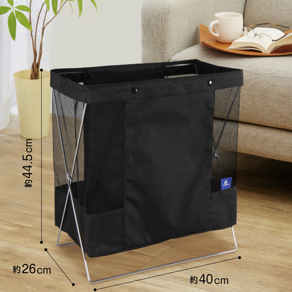 【商品仕様】:サイズ/:約幅40×奥行26×高さ44.5cm(ワイヤー含む)、カラー/ブラック、内容/1個、材質/ポリエステル・鉄・ポリプロピレン、耐荷重/約6kg