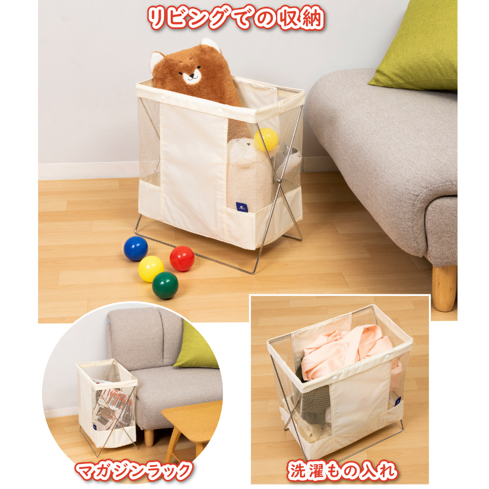 【中が程よく見えるメッシュ】:フタがないのでサッと入れることができ、メッシュ生地からほどよく中身が見えて探す手間も省ける。