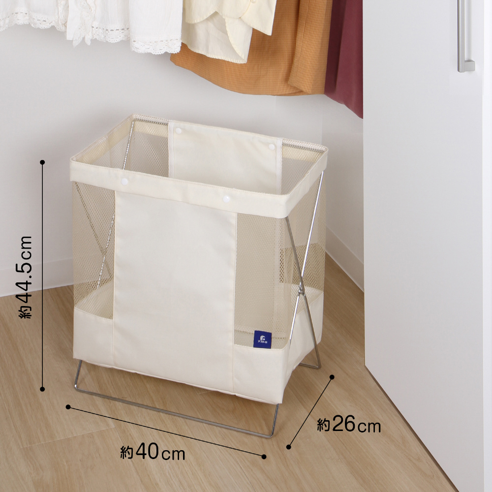 【商品仕様】:サイズ/:約幅40×奥行26×高さ44.5cm(ワイヤー含む)、カラー/アイボリー、内容/1個、材質/ポリエステル・鉄・ポリプロピレン、耐荷重/約6kg