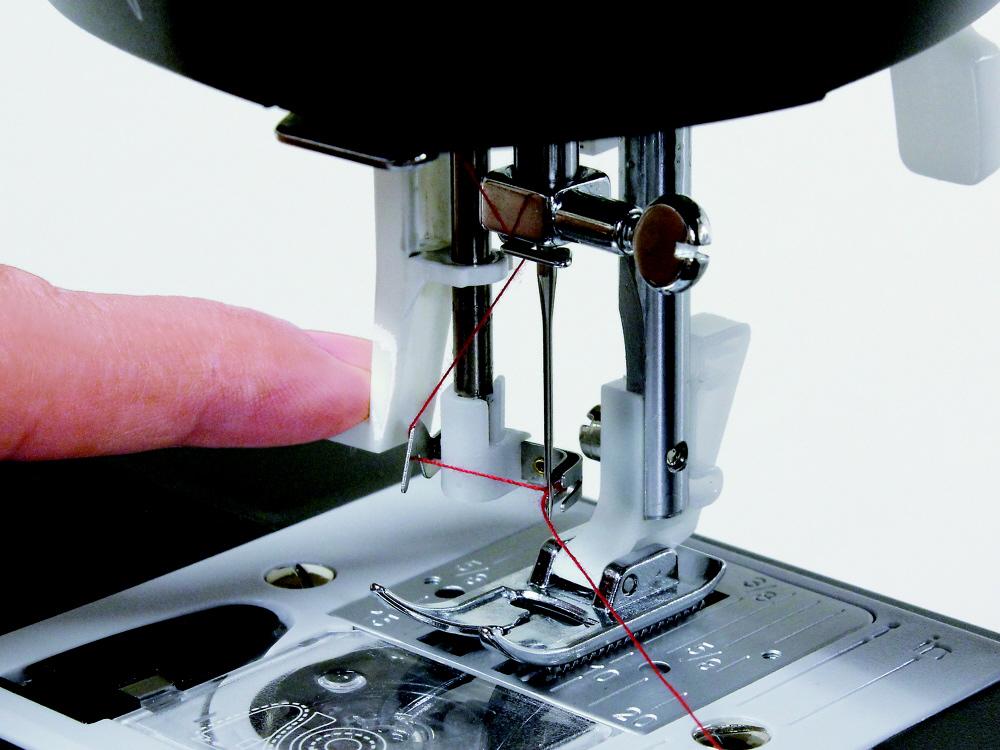 面倒な糸通しも簡単!レバーひとつで針に糸が通せる優れものです。