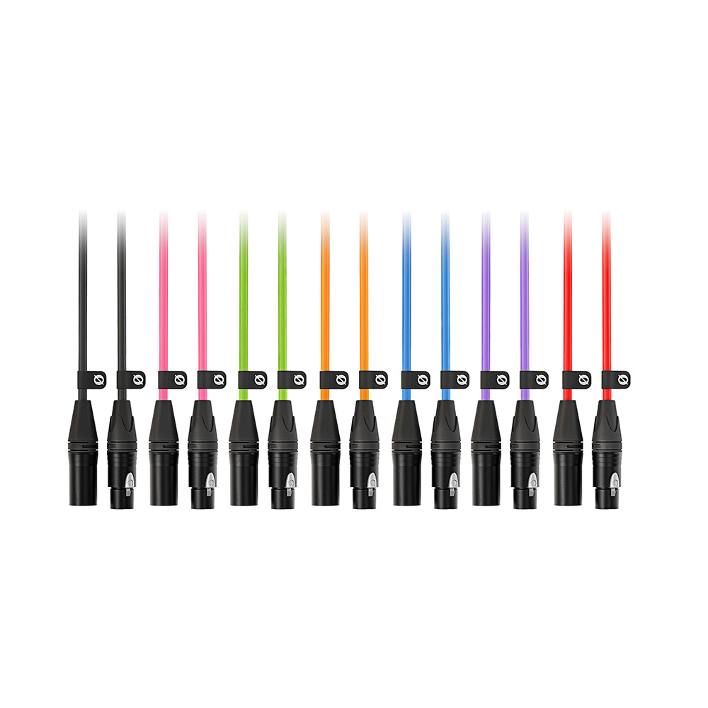 プラグ形状はXLRオス-メス、長さは3m、それぞれ7色展開で、入力ラインの識別に役立ちます。