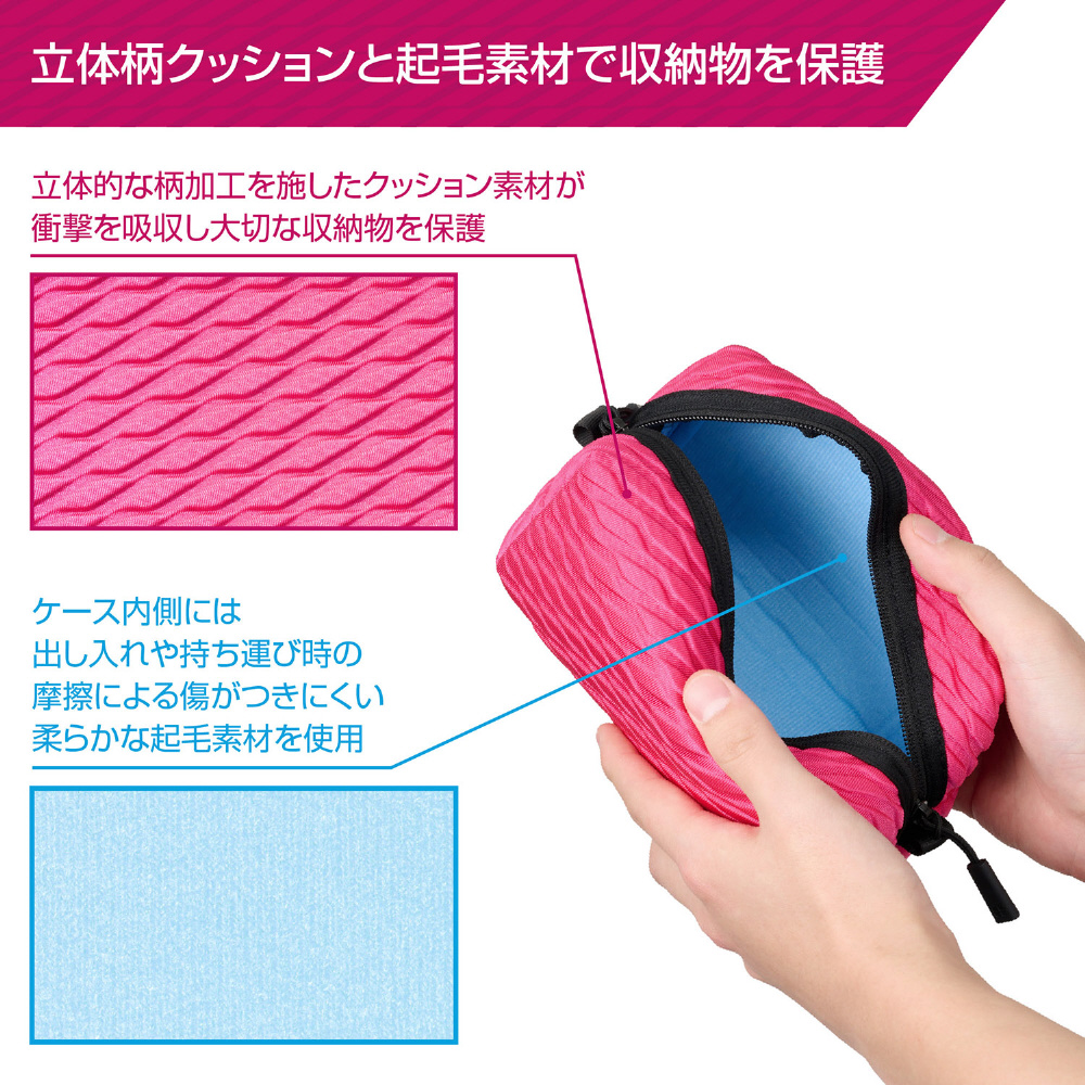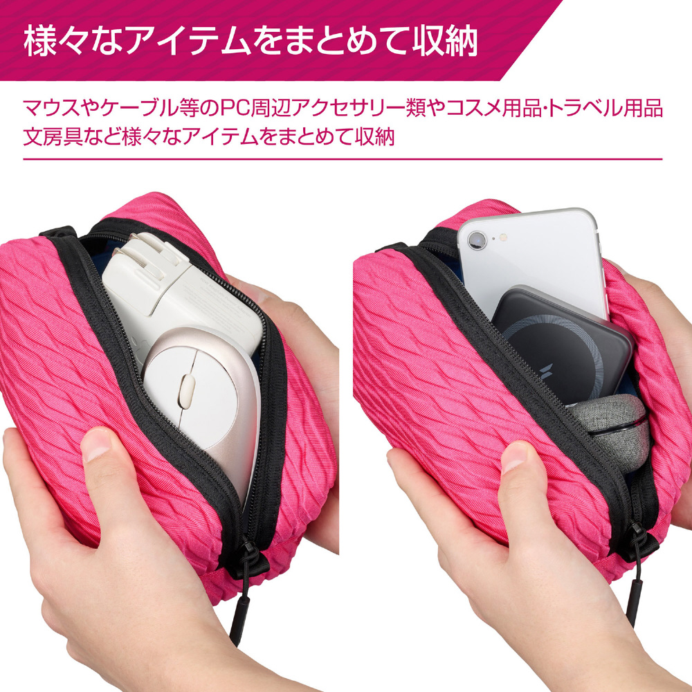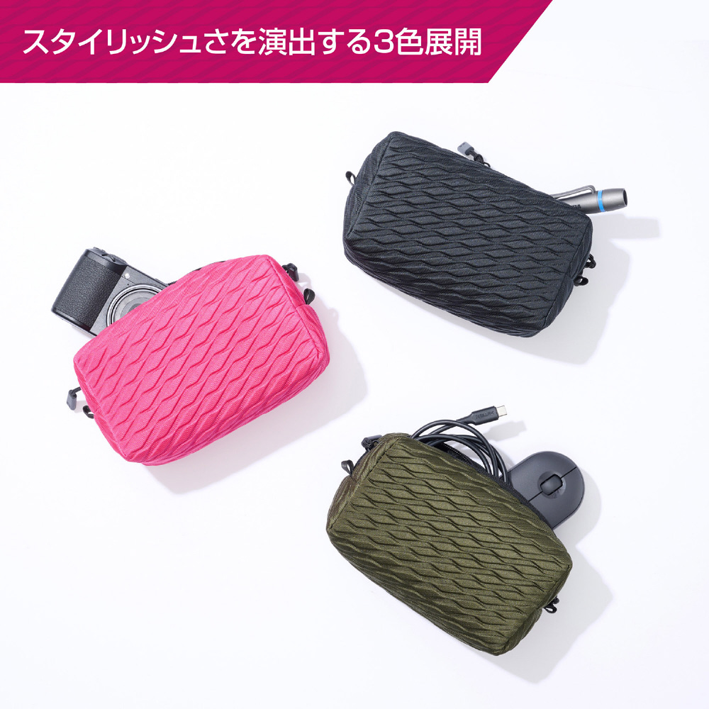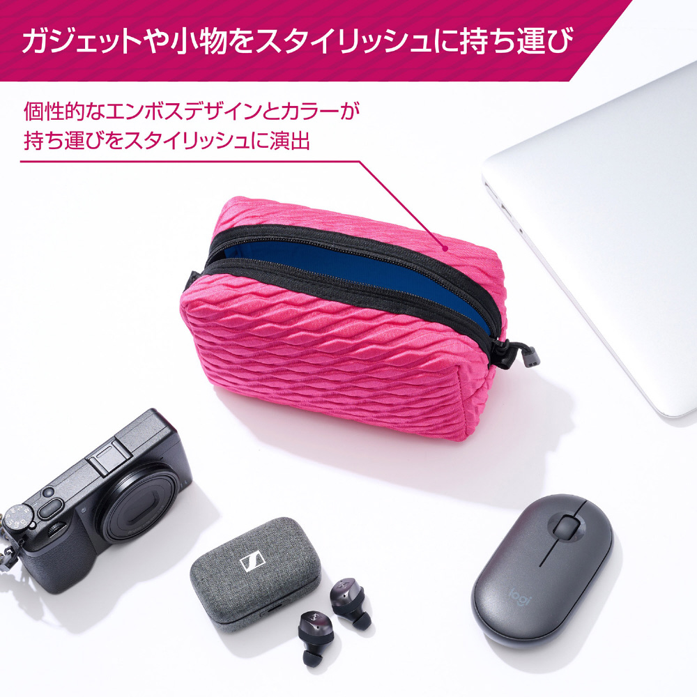 ガジェット類や小物をまとめて収納できる衝撃吸収に優れたエンボスデザインのマルチポーチ