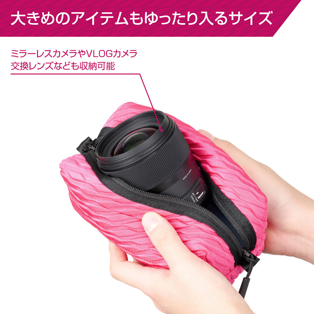 無駄な引っ掛かりがないのでバッグへの出し入れもスムーズです。カメラ等のインナーケースとしても便利に使えます。