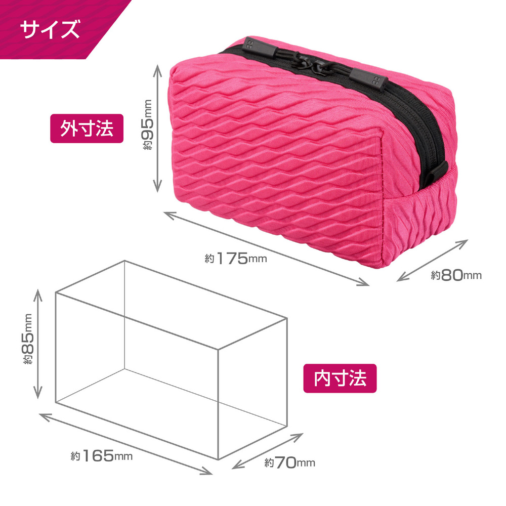 | 商品名 | マルチポーチ [W175xH95xD80mm] プラスシェル エンボス ウェーブピンク SEBMPWPK |