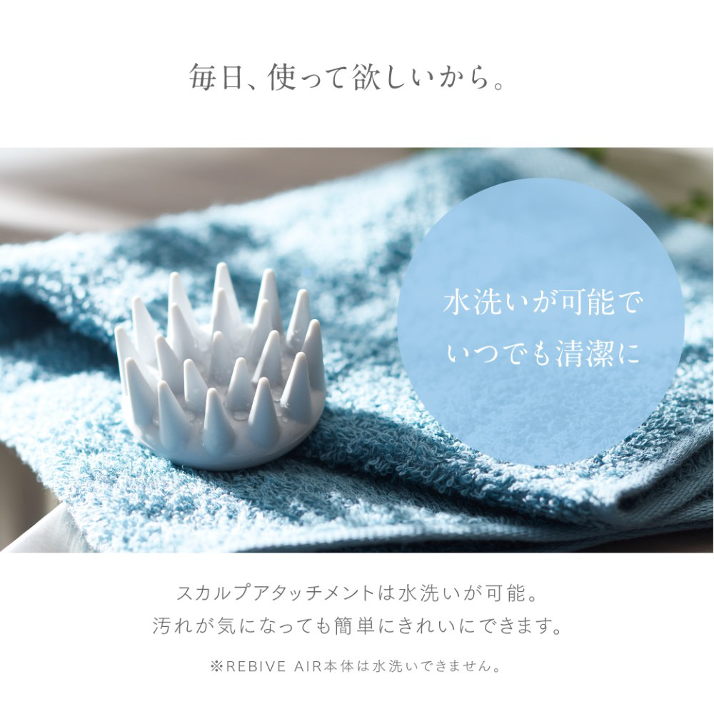 スカルプアタッチメントは水洗いが可能。汚れが気になってもお手入れ簡単。