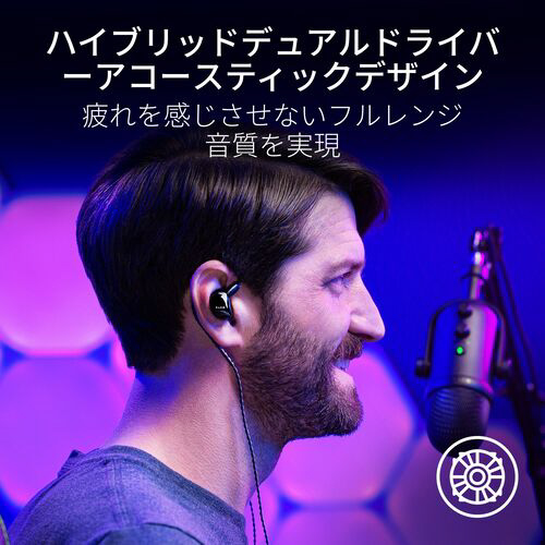 Razer Moray インイヤーモニターは、人間工学に基づき長時間の快適さを追求して作られています。一日中のストリーミングまたはゲームプレイに最適です。ハイブリッドデュアルドライバーの音響設計と疲れを感じさせない専門的な調整機能により、ファンを楽しませたり、長時間ゲームプレイしながら、高精度のオーディオが体験できます。