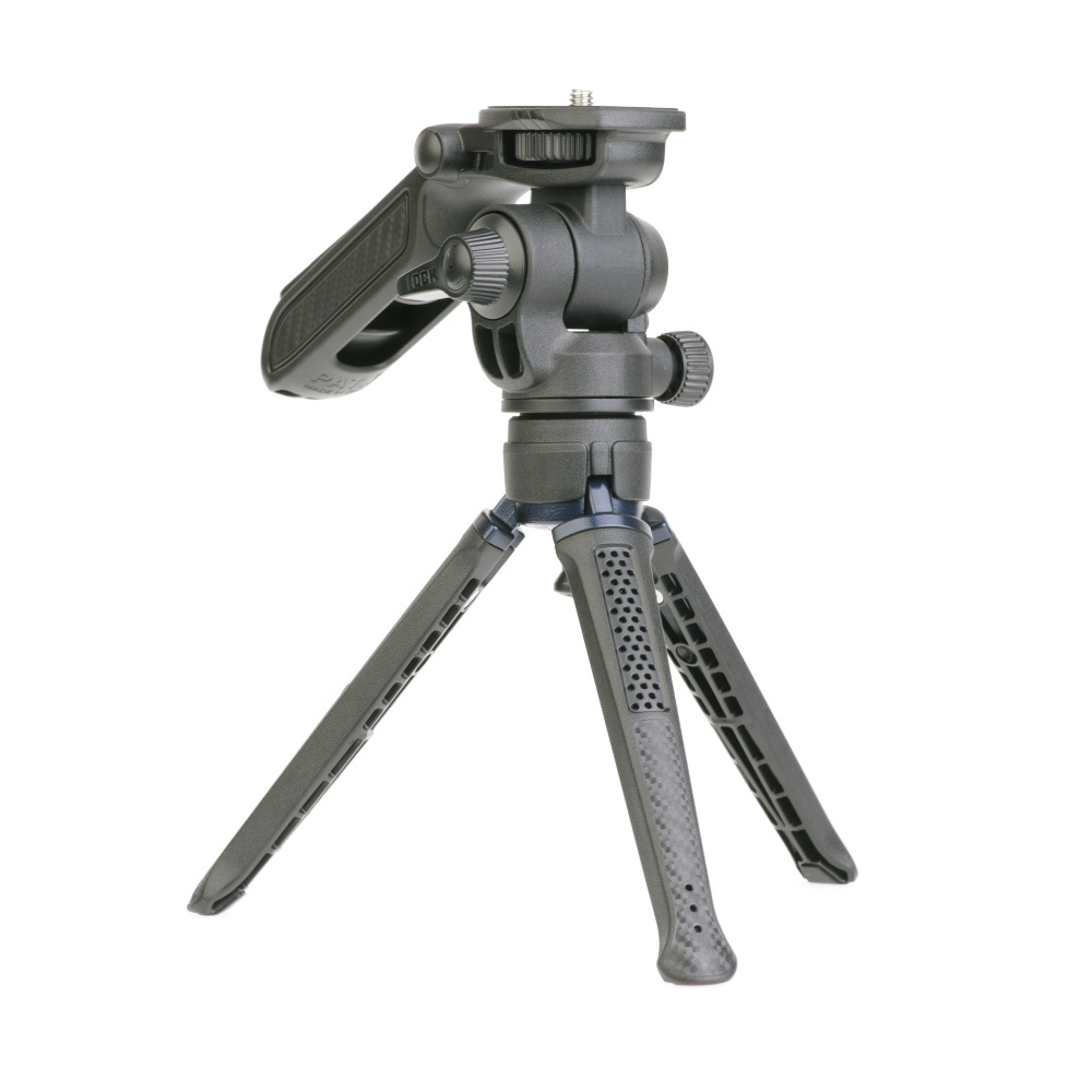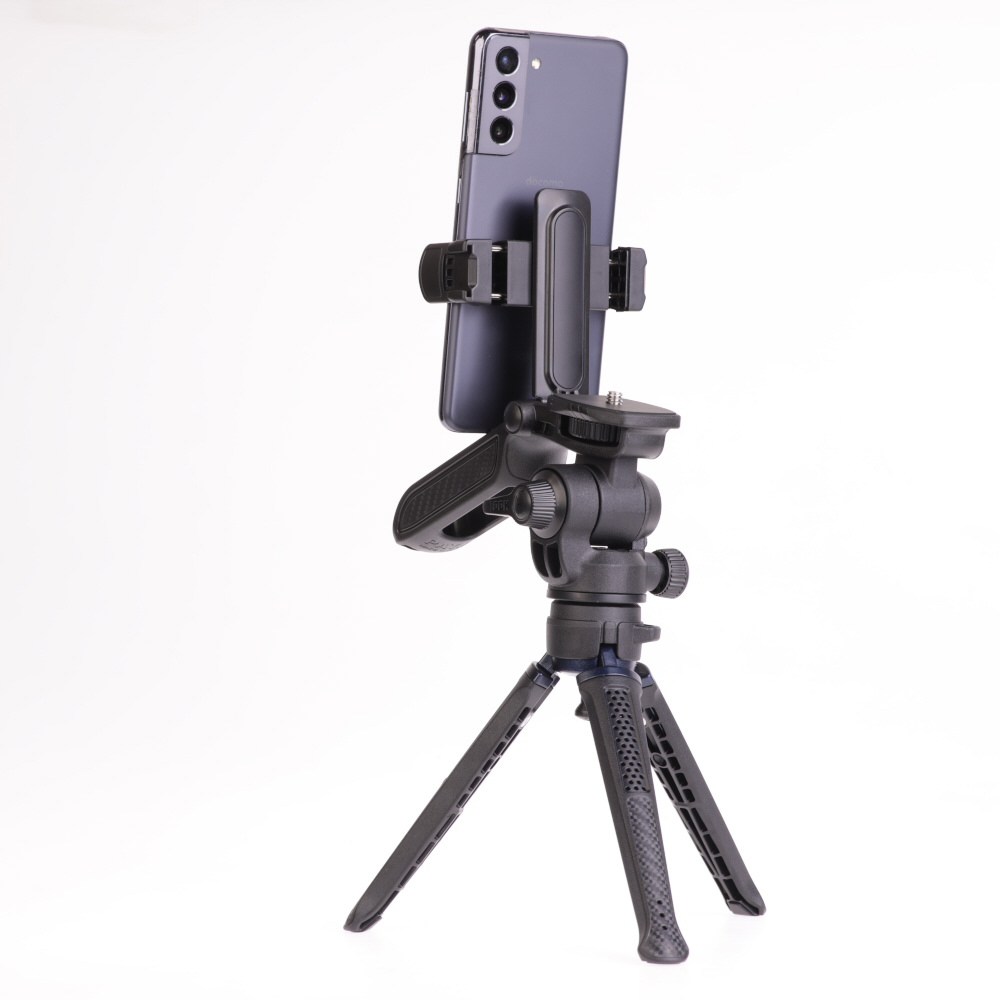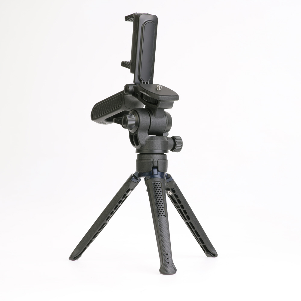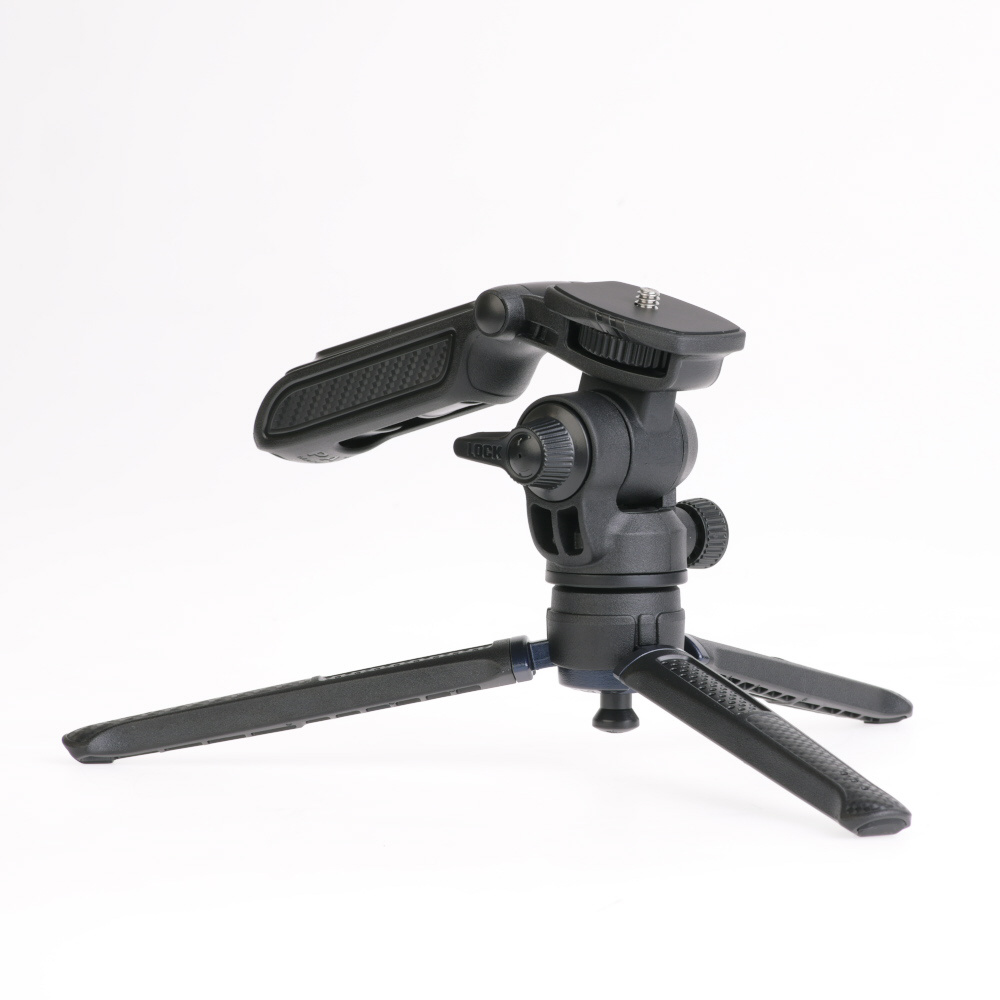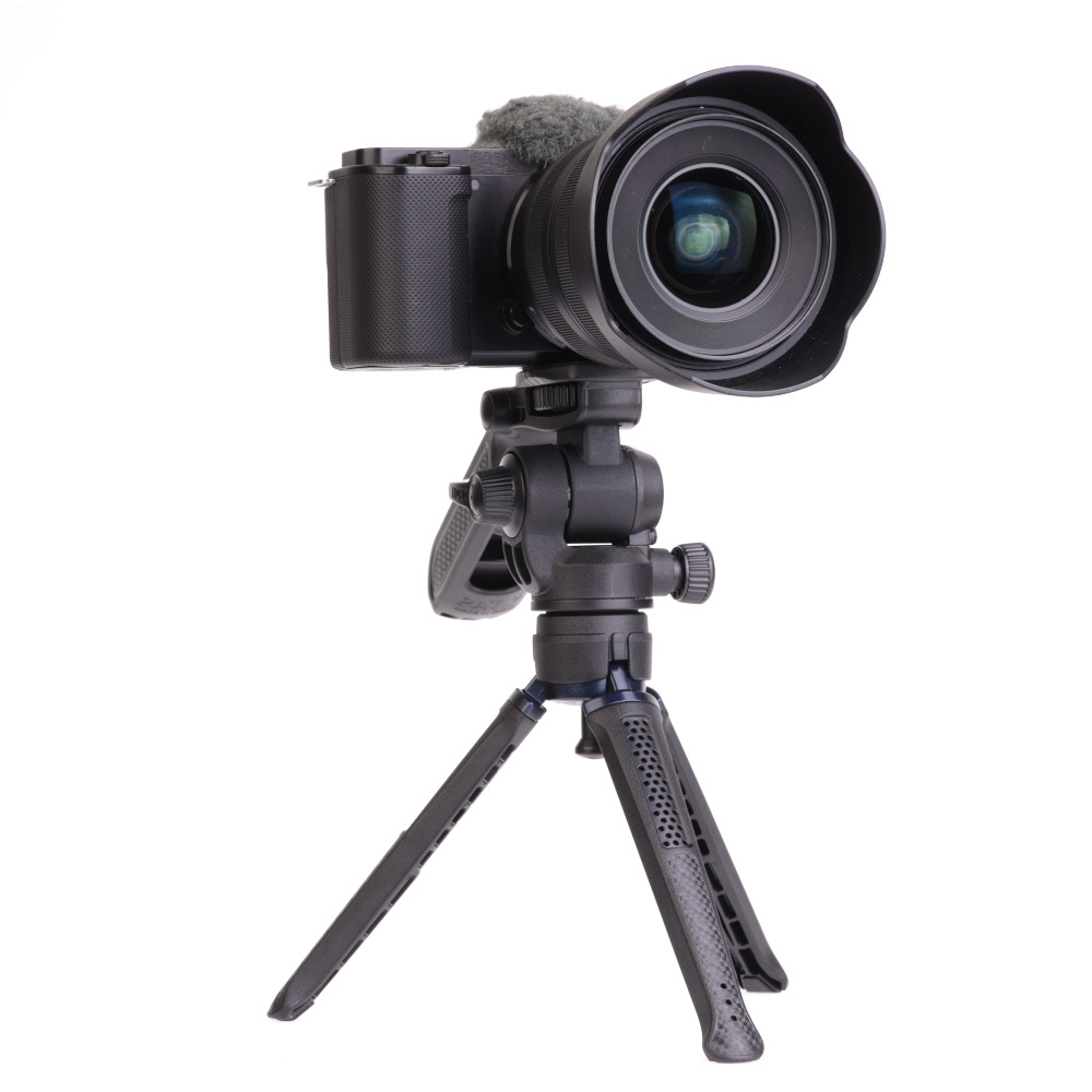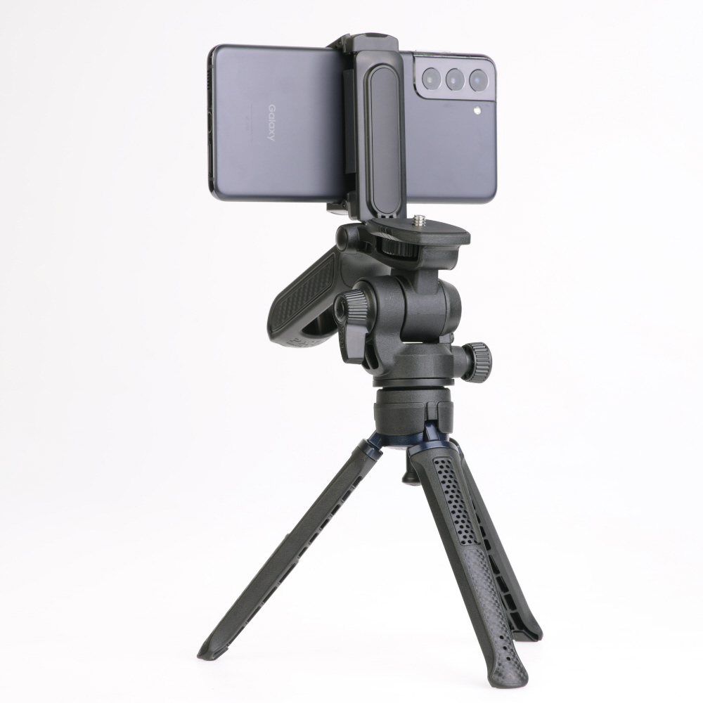 VLOGカメラのグリップ三脚として、スマホ用グリップ三脚として使える、ビデオヘッドが特徴の卓上三脚