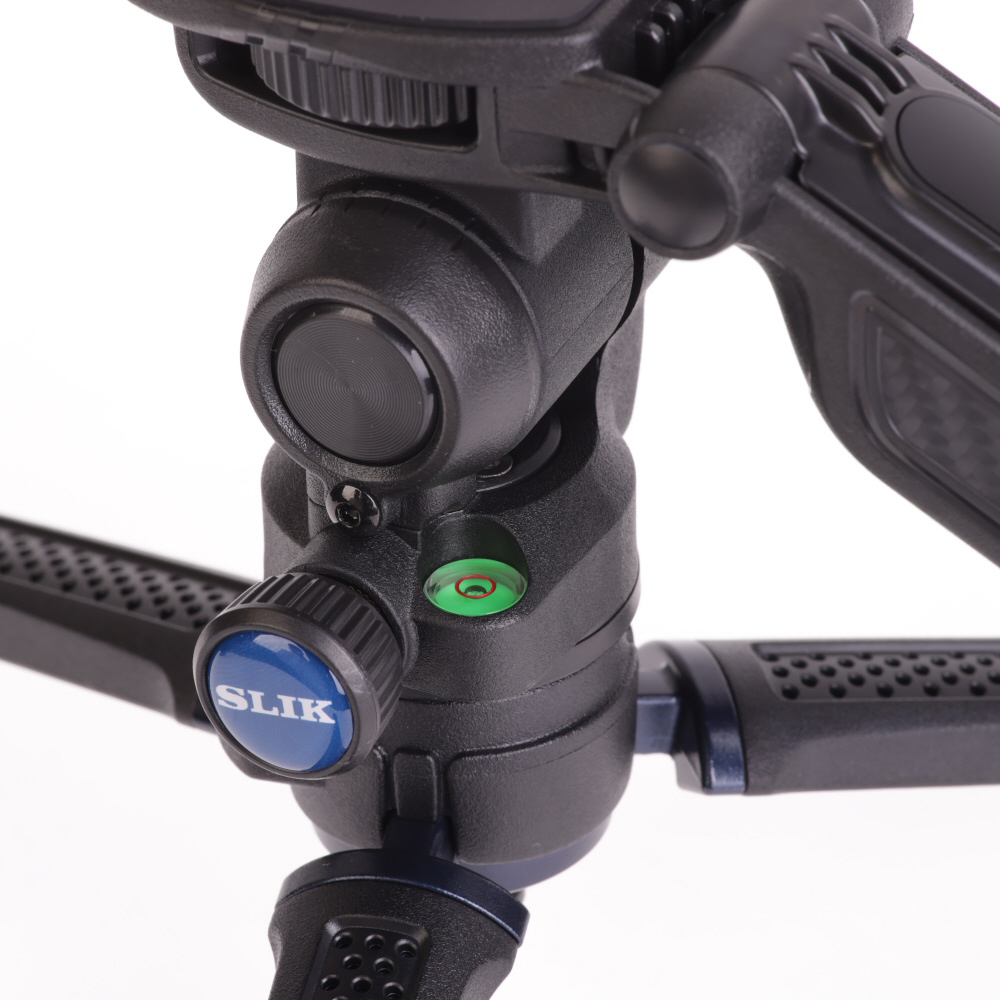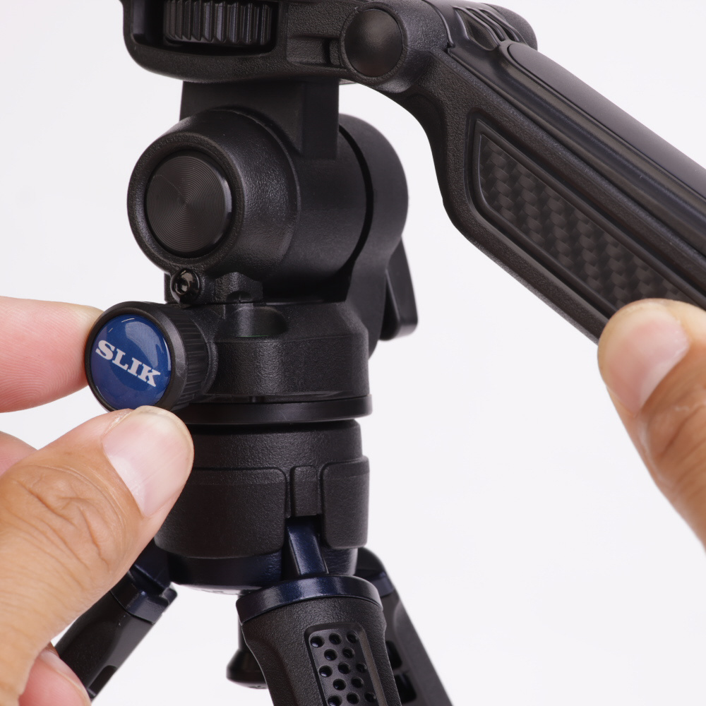 しっかりしたハンドル付きの、スムースな動きのビデオヘッドを備えた、グリップ兼用の三脚です。