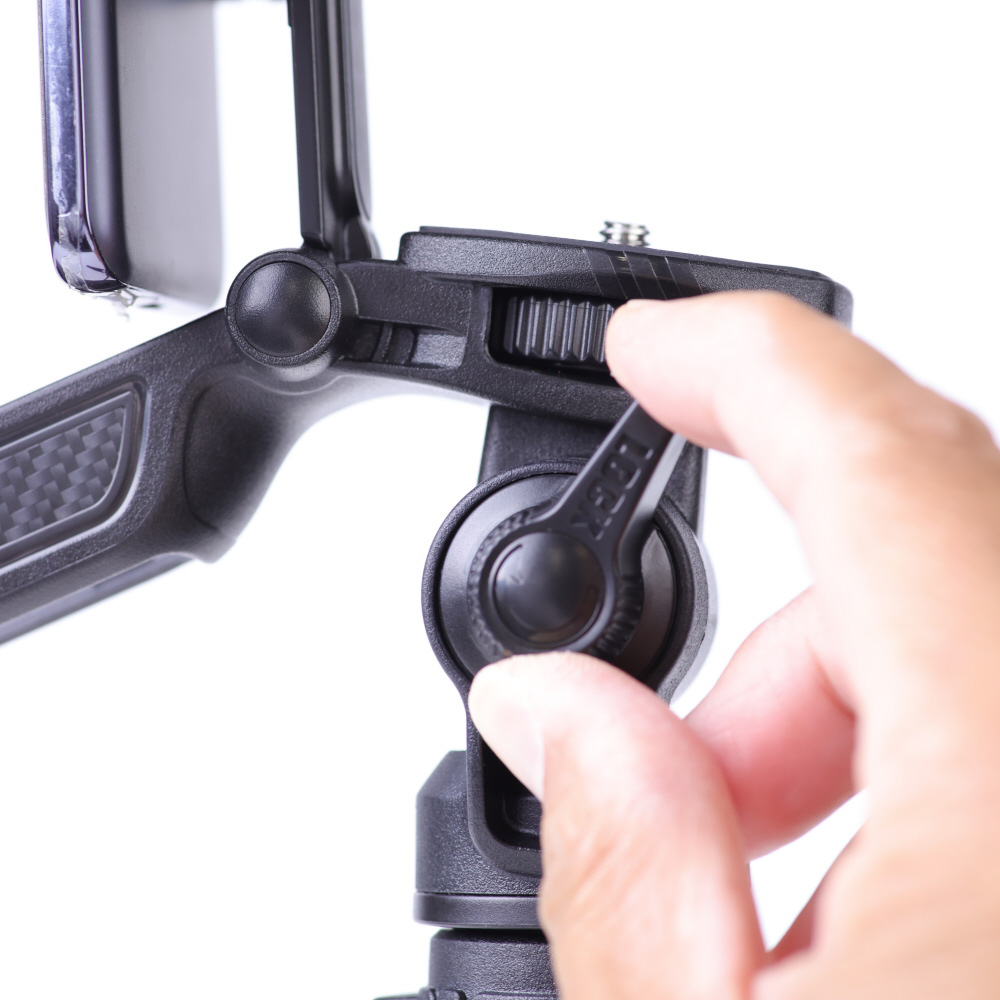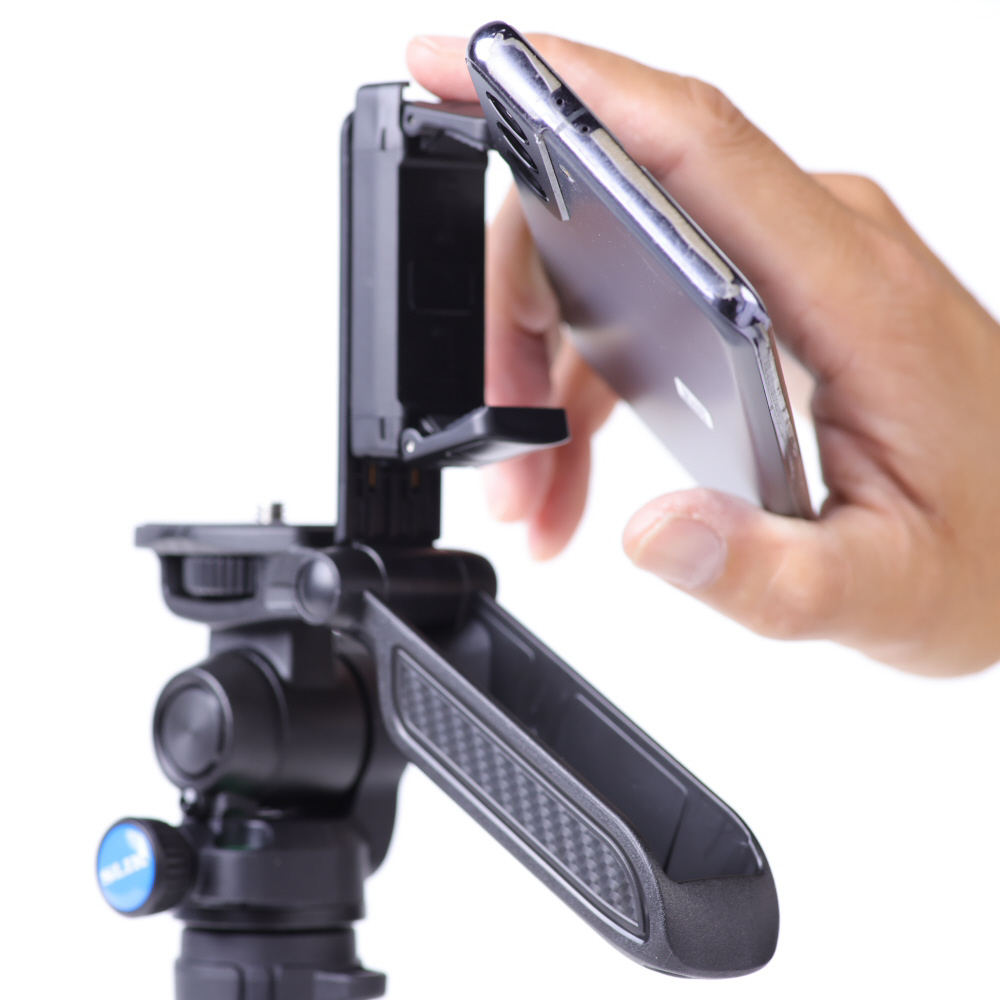 グリップ部分からはスマホホルダーを引き出すことができて、スマホでの撮影にも対応。