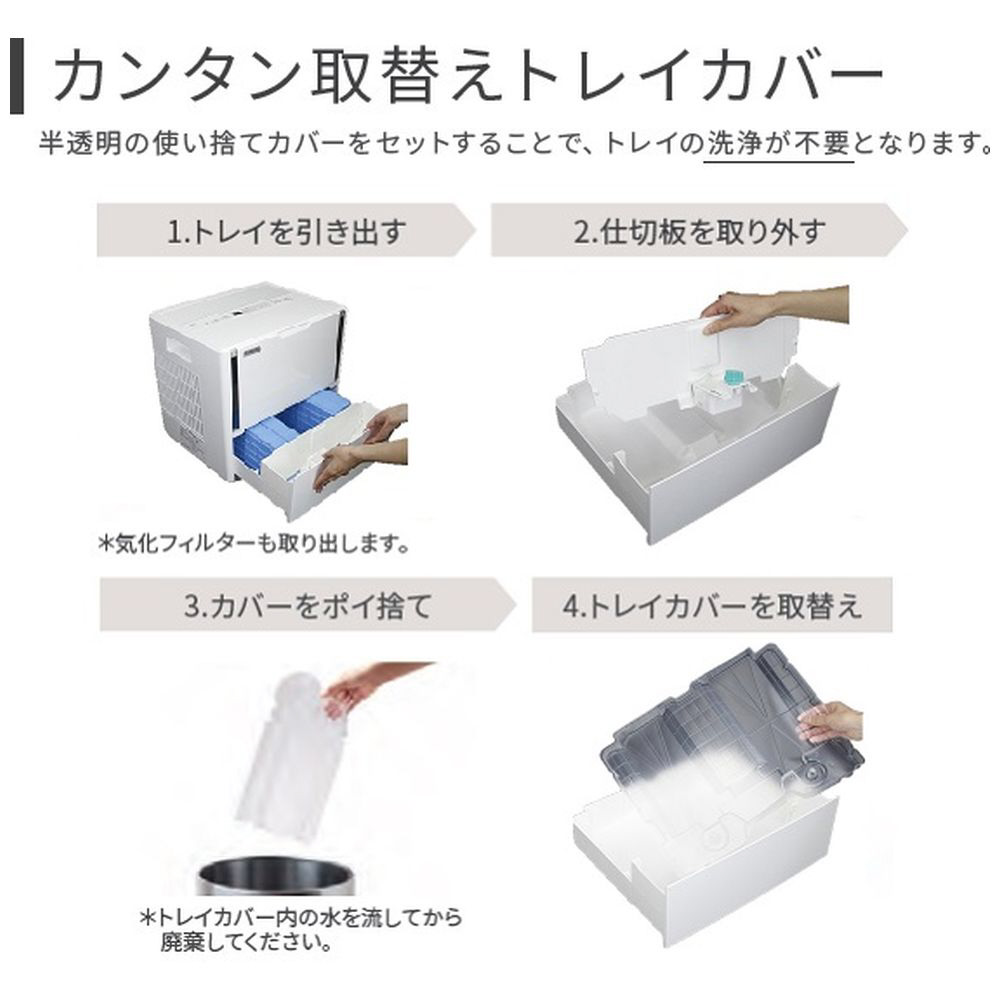 取替えトレイカバー搭載でお手入れがカンタンで手軽に。広いスペースもこの1台でたっぷりうるおい。