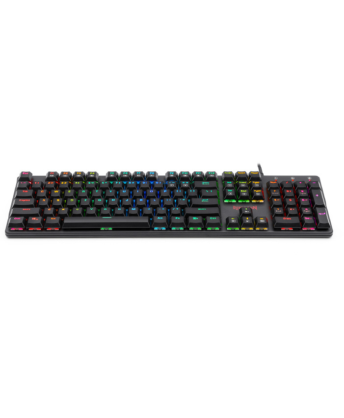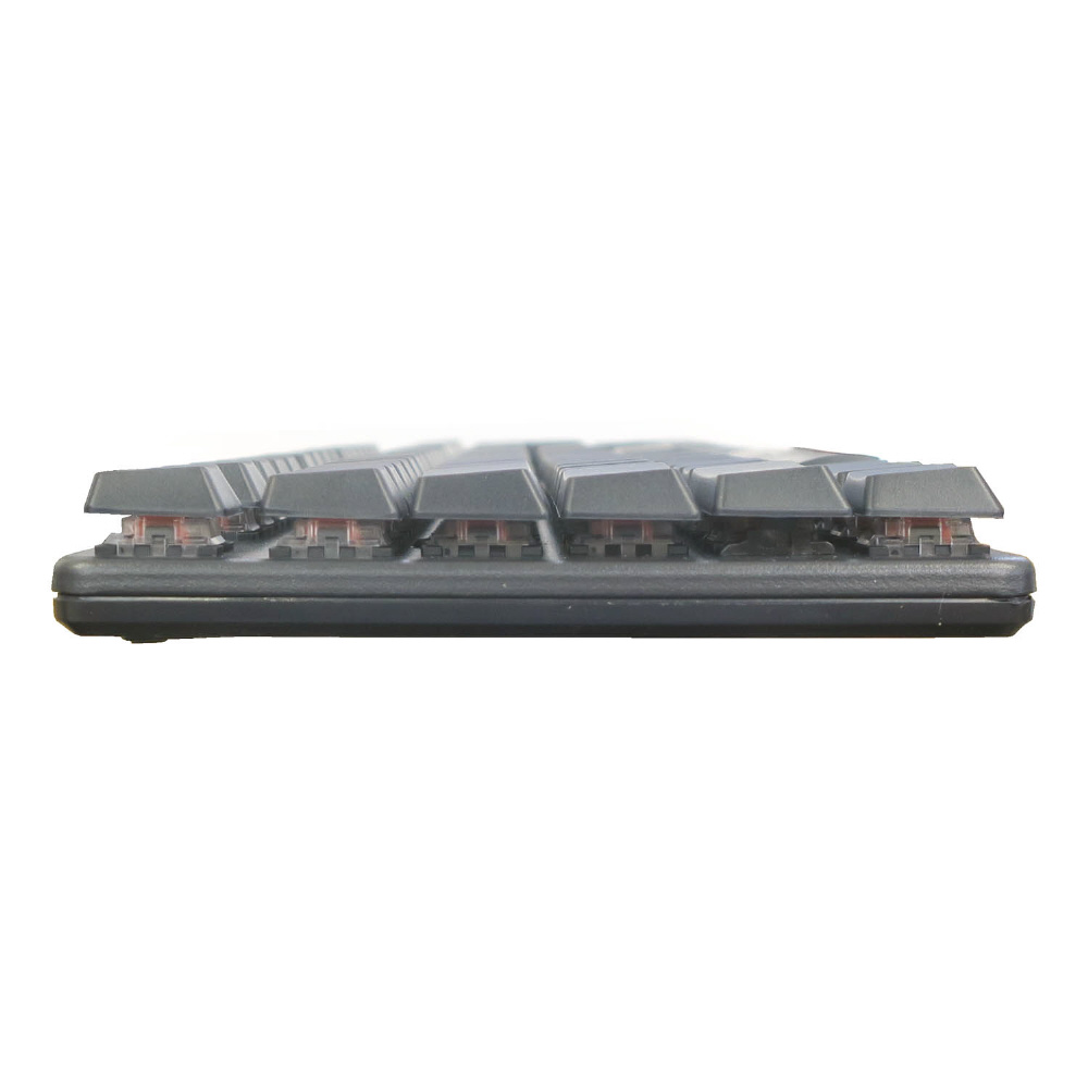 クリック感がなく滑らかさ・静かさが特長の赤軸メカニカルキースイッチが搭載されています。押し始めから底まで止まることがないので連打などに向いており、万能タイプのスイッチです。