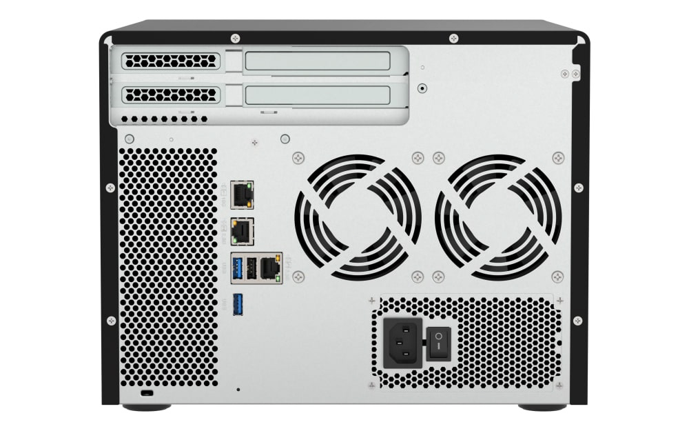 大容量の TS-855X は6つの 3.5インチ SATAドライブベイ (HDD用)、2つの 2.5インチ SATAドライブベイ (SSD用)、またIntel QuickAssist Technology (QAT)対応の8コアプロセッサを搭載、ビジネスにおけるデータストレージおよび仮想化環境の導入を強力に支援します。内蔵の10GbE/2.5GbE 高速接続性能によって、高速データアクセス、バックアップ/復元、ファイルサーバー、仮想化アプリケーションの実現をサポートします。QTSオペレーティングシステムが標準搭載されているTS-855Xは、 必要に応じてZFSベースのQuTS heroオペレーティングシステムを使用するように切り替えることが可能です。TS-855XはQNAPによって長期間(最長2027年まで)提供・サポートされるため、長期プロジェクトへの導入に適合するNASモデルをお探しの企業にとって理想的です。