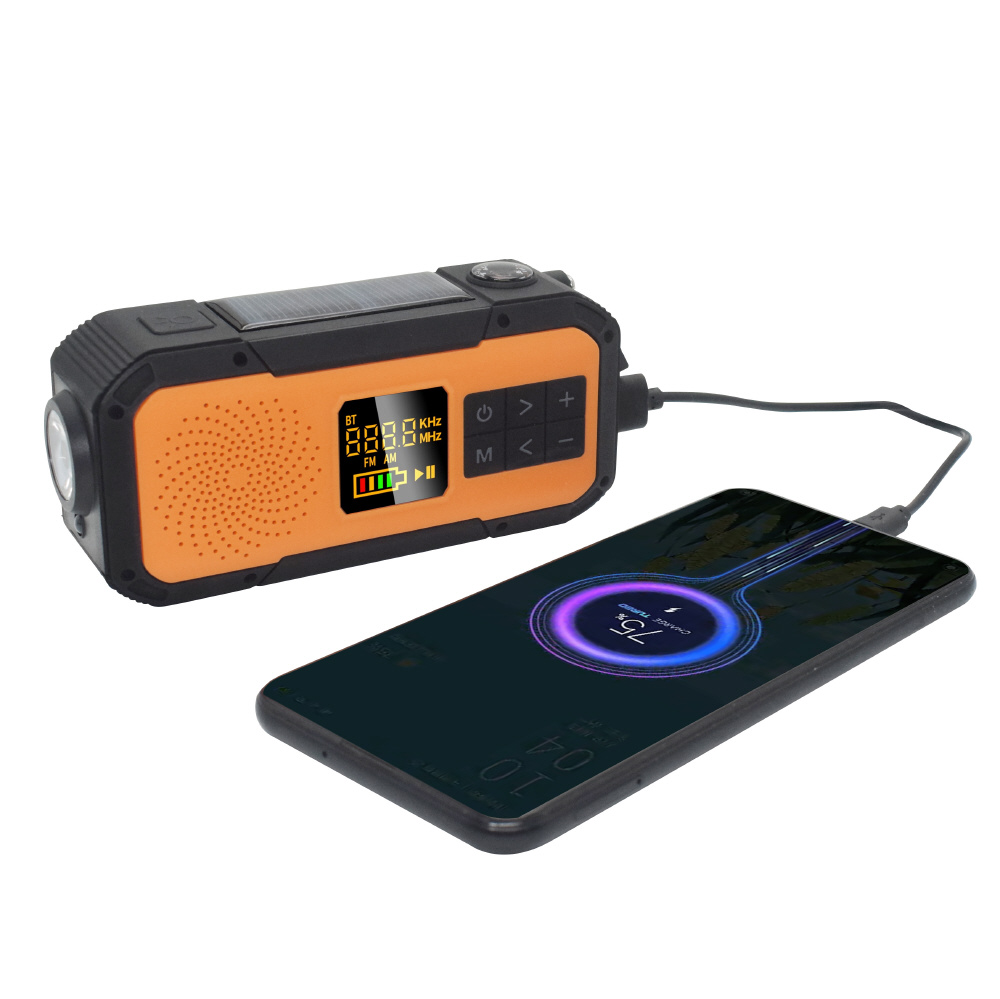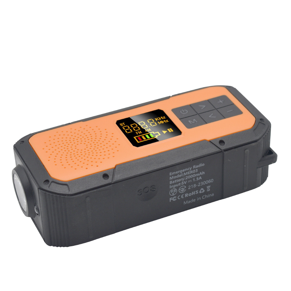 手回充電ラジオ mlabs ブラックオレンジ MER03 [ワイドFM対応 /防水ラジオ /AM/FM]