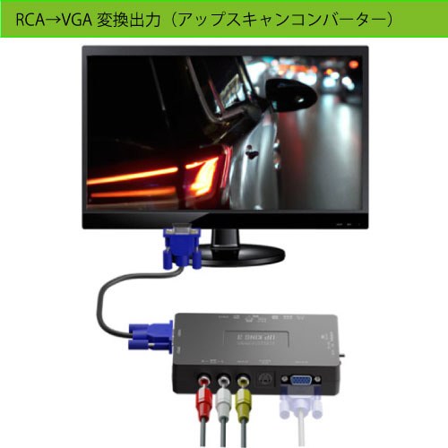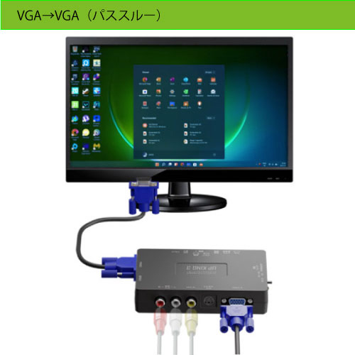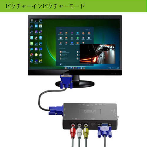 S端子やコンポジット端子(NTSC信号)出力をVGA(RGB信号)へ変換出力するコンバーターです。