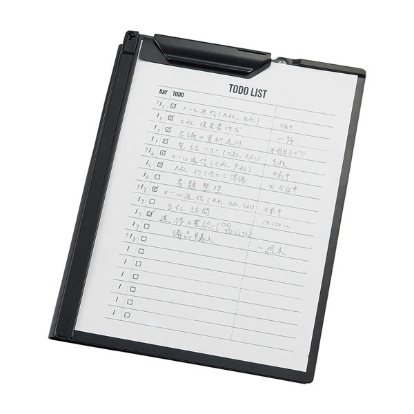 | 仕様1 | ■サイズ:169×9×222mm■材質(表表紙・ポケット・紙押さえ):ポリプロピレン/(裏表紙):ABS樹脂/(クリップ):POM■収容枚数:コピー用紙20枚 |