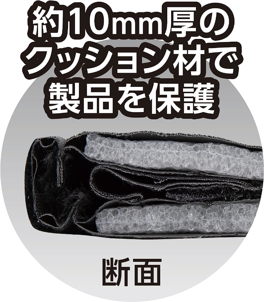 厚み約10mmのクッション材で製品を保護。