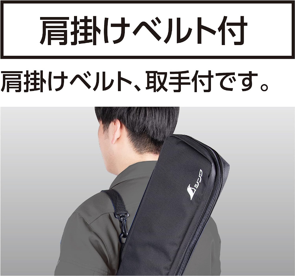 取手と肩掛けベルトがついており、持ち運びやすい。