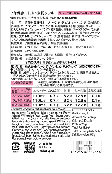 ■プレーン味・にんじん味・紫いも味の各1本計3本入り。