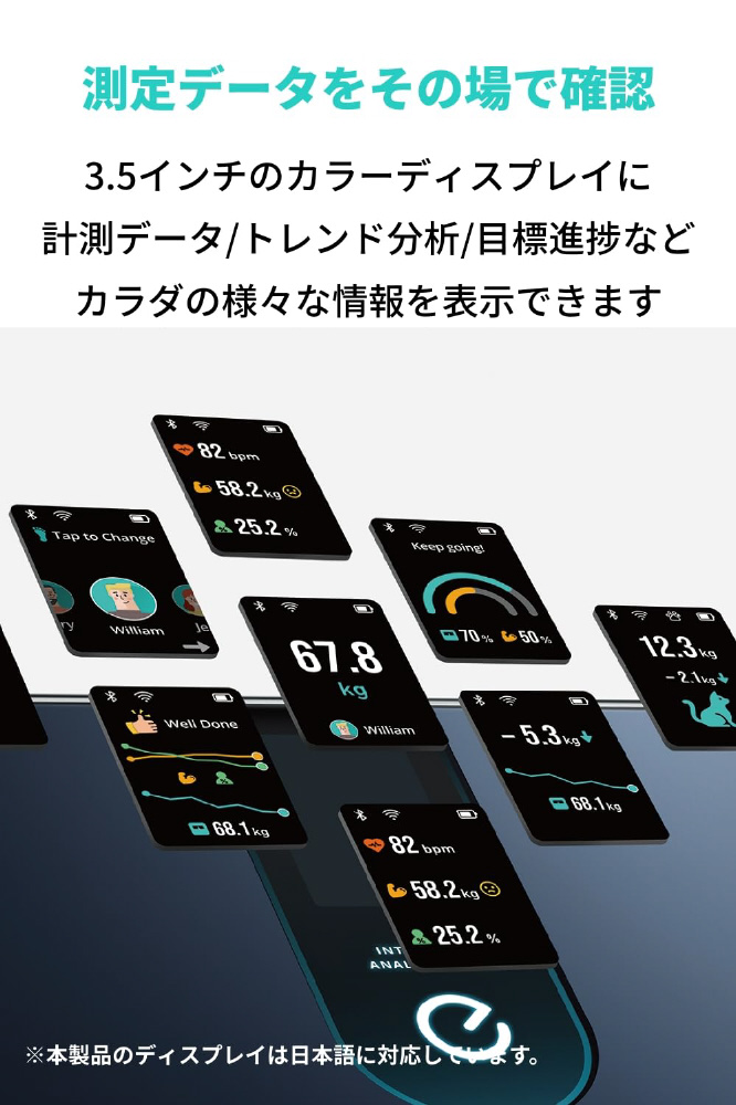 測定データを確認できるカラーディスプレイを搭載した体重体組成計