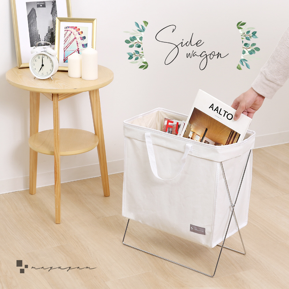 【商品仕様】:サイズ/約幅40×奥行20×高さ47cm(ワイヤー含む)バッグ部分高さ:約35cm、柄/無地 ホワイト、内容/1個、材質/TC(ポリエチレンコーティング)、鉄、ポリエステル