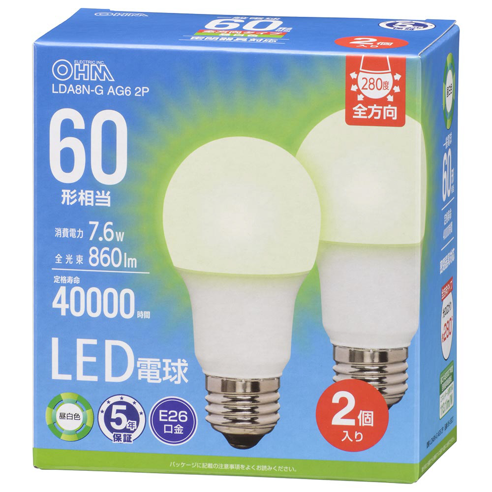 商品名 LED電球 LDA8N-GAG62P [E26 /一般電球形 /60W相当 /昼白色 /2個 /全方向タイプ]
