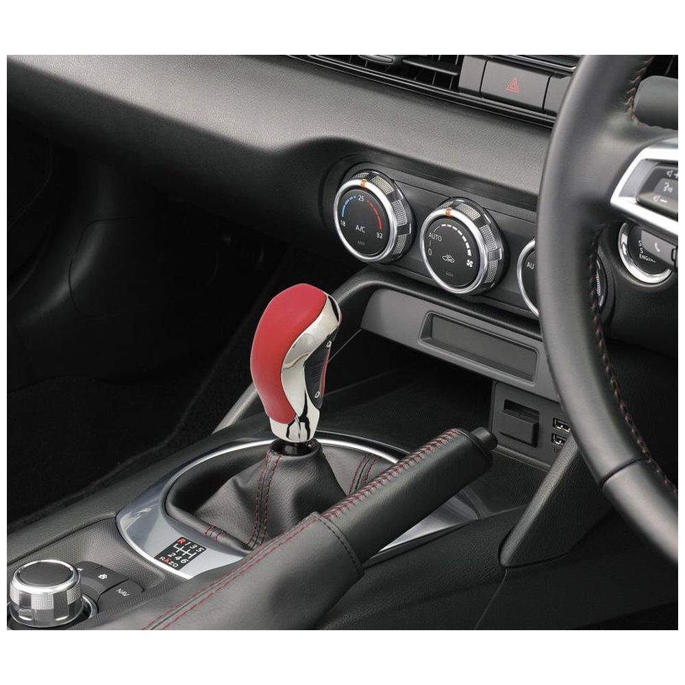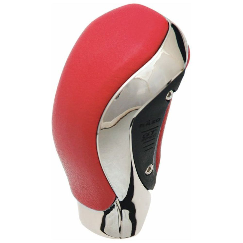 レッドレザー+メッキ。本革は純正と同等の本革を使用。重量270gがシフトフィールをアシスト。2段階高さ選択。対応シャフト径8mm、10mm、12mm。