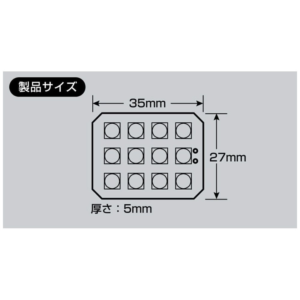 高輝度LEDを12個搭載したLEDルームランプ。フロントルームランプやセンタールームランプに装着することで室内の隅々まで照射。高い実用性をもった高性能LEDバルブ。4つの口金に対応することで高い汎用性を実現。