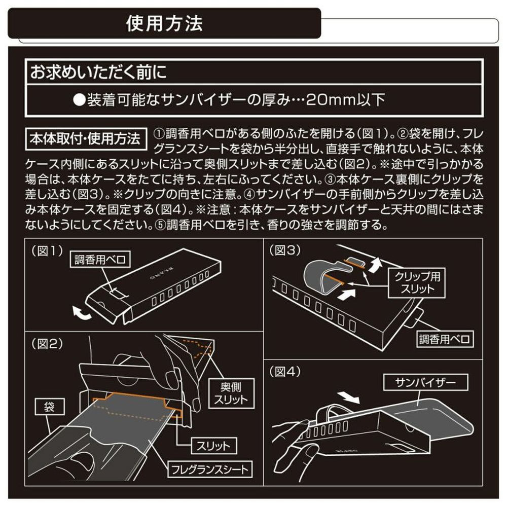 、サンバイザーに取付けるタイプのクルマ用芳香剤です。